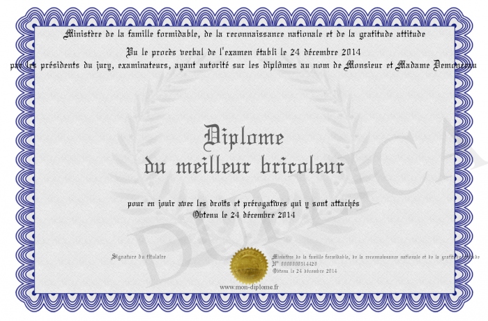 Envoyez par email votre Diplôme du meilleur bricoleur personalisé