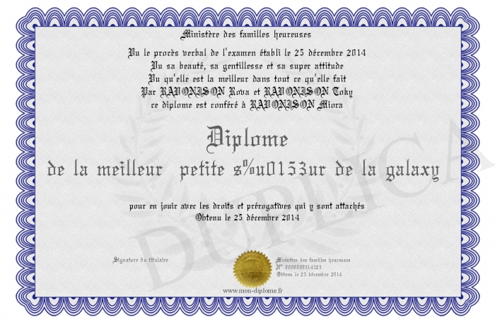 Envoyez par email votre Diplôme de la meilleur petite soeur de la galaxy personalisé