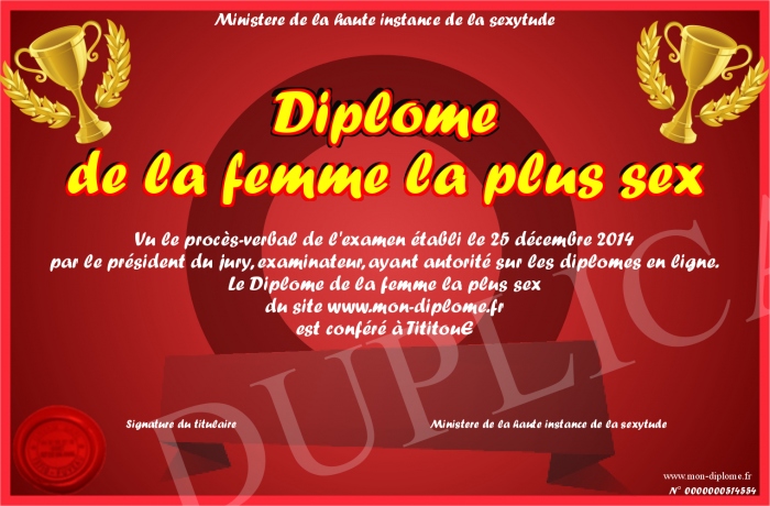 Envoyez par email votre Diplôme de la femme la plus sex personalisé