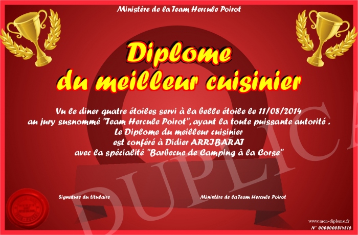 Envoyez par email votre Diplôme du meilleur cuisinier personalisé