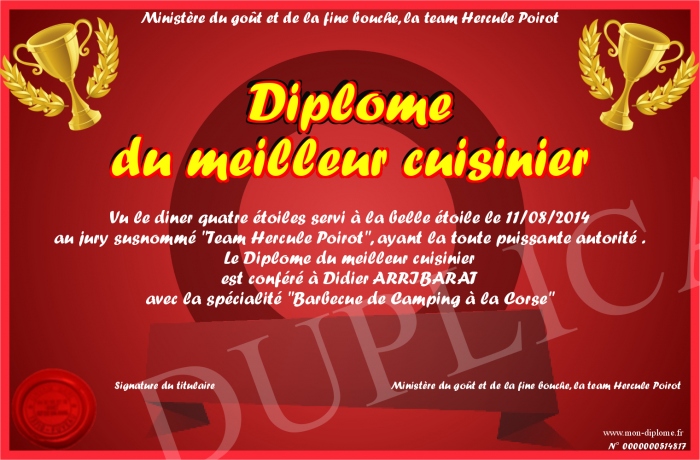 Envoyez par email votre Diplôme du meilleur cuisinier personalisé
