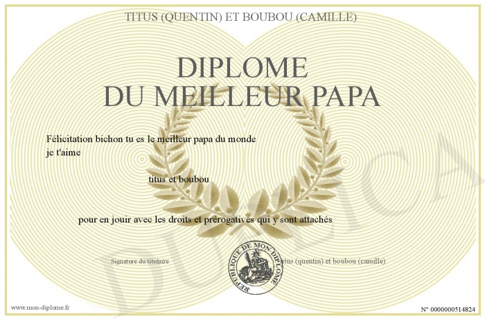 Envoyez par email votre Diplôme du meilleur papa personalisé