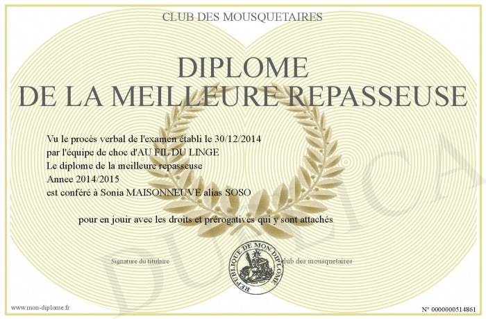 Envoyez par email votre Diplôme de la meilleure repasseuse personalisé