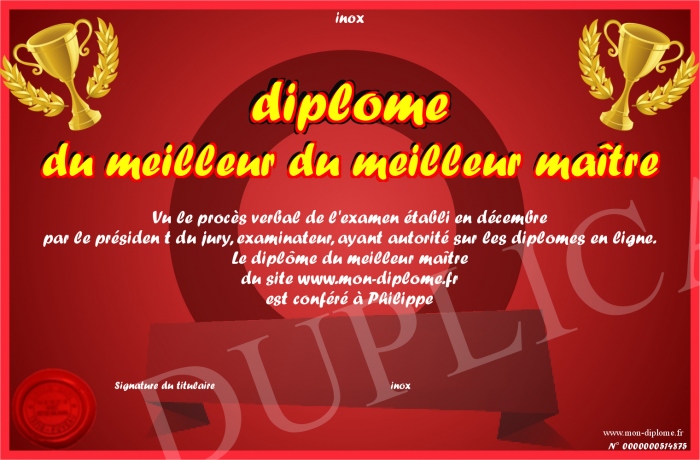 Envoyez par email votre diplôme du meilleur du meilleur maître personalisé