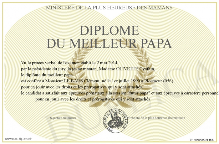 Envoyez par email votre Diplôme du meilleur papa personalisé