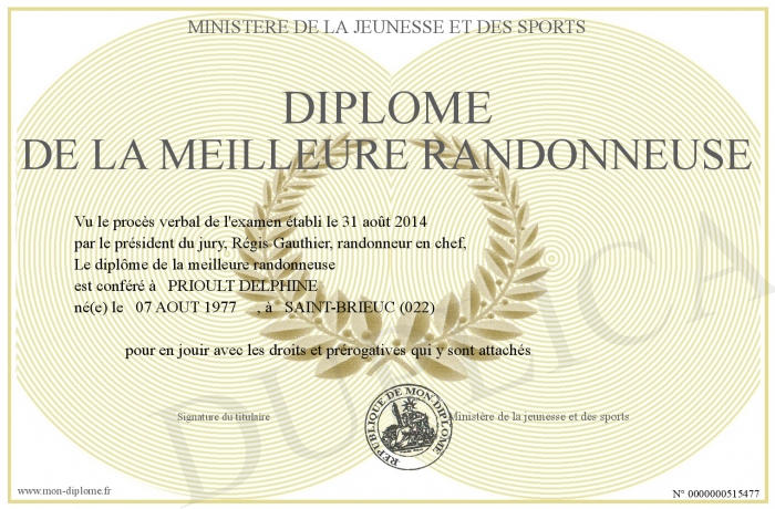 Envoyez par email votre Diplôme de la meilleure randonneuse personalisé