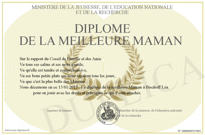 Envoyez par email votre Diplôme de la meilleure Maman personalisé