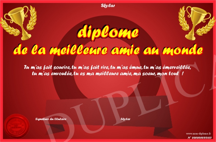 Envoyez par email votre diplôme de la meilleure amie au monde personalisé