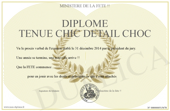 Envoyez par email votre Diplôme Tenue Chic Détail Choc personalisé