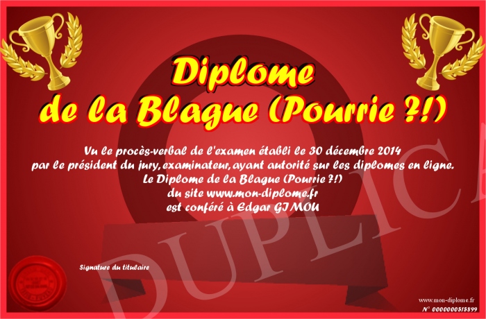 Envoyez par email votre Diplôme de la Blague (Pourrie ?!) personalisé