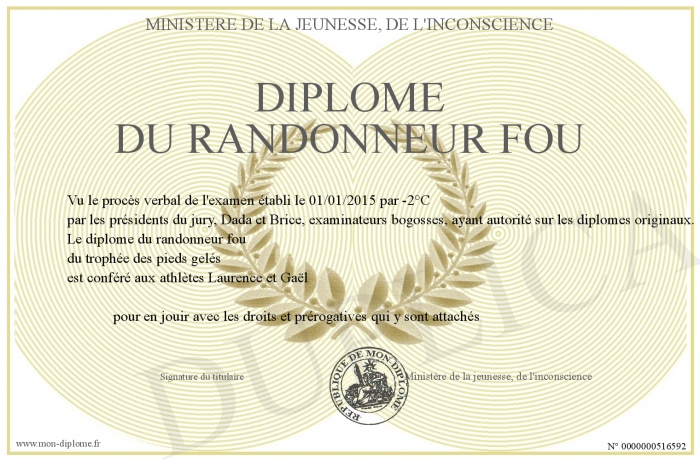 Envoyez par email votre Diplôme du randonneur fou personalisé