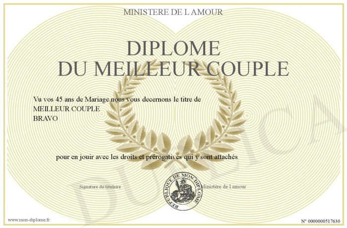 Envoyez par email votre Diplôme du meilleur couple personalisé
