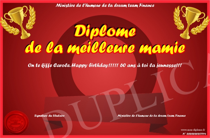 Envoyez par email votre Diplôme de la meilleure mamie personalisé