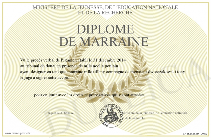 Envoyez par email votre diplome de marraine personalisé