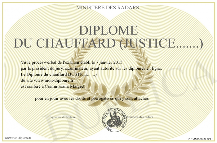 Envoyez par email votre Diplôme du chauffard (JUSTICE.......) personalisé