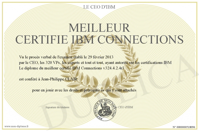 Envoyez par email votre Meilleur certifié IBM Connections personalisé