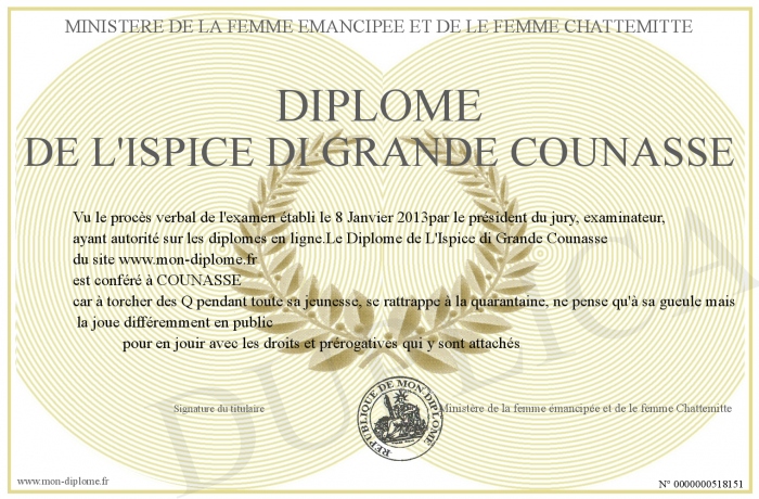 Envoyez par email votre Diplôme de L'Ispice di Grande Counasse personalisé