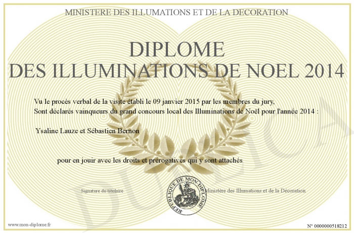 Envoyez par email votre Diplôme des Illuminations de Noel 2014 personalisé