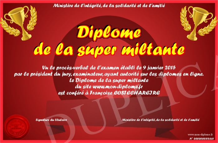 envoyé par le Ministère de l'intégrité, de la solidarité et de l'amitié !