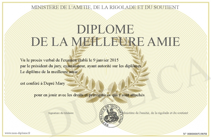 Envoyez par email votre Diplôme de la meilleure amie personalisé