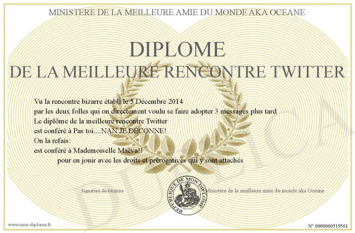 Envoyez par email votre Diplôme de la meilleure rencontre Twitter personalisé