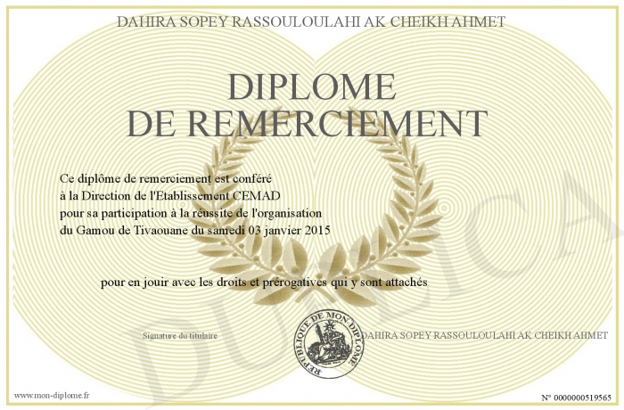 Envoyez par email votre DIPLOME DE REMERCIEMENT personalisé