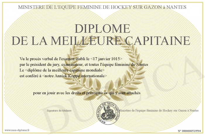 Envoyez par email votre Diplôme de la meilleure capitaine personalisé