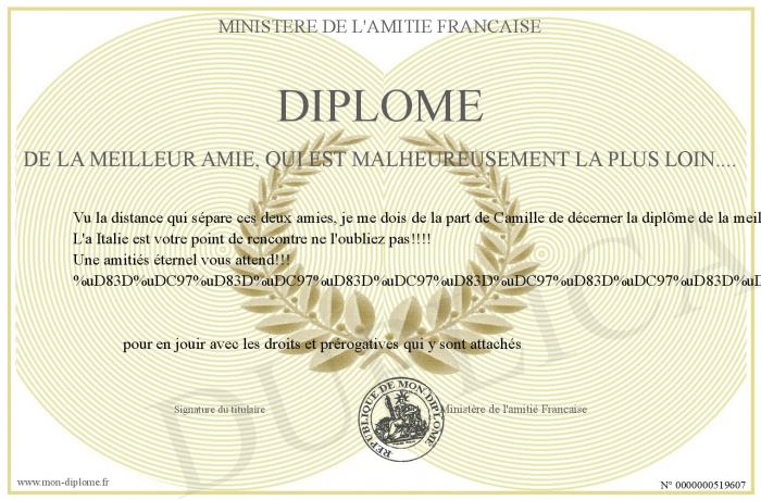 Envoyez par email votre Diplôme de la meilleur amie, qui est malheureusement la plus loin.... personalisé