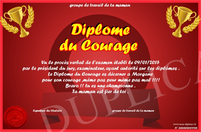 Envoyez par email votre Diplôme du Courage personalisé