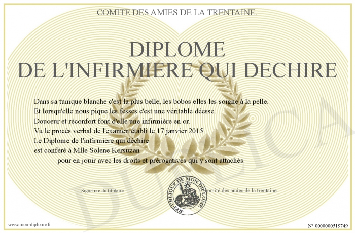 Envoyez par email votre Diplôme de l'infirmière qui déchire personalisé