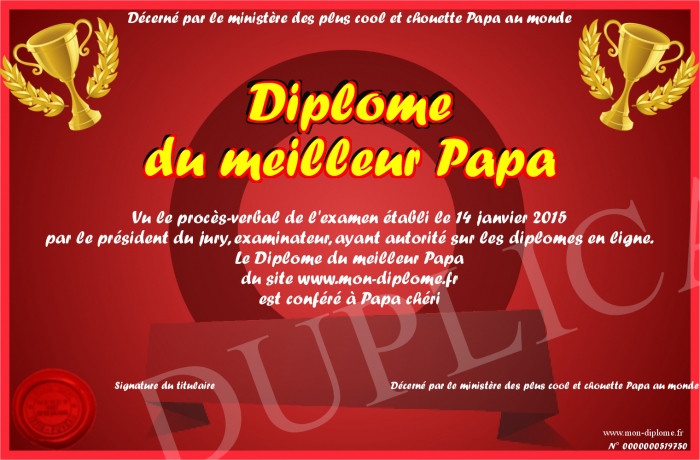Envoyez par email votre Diplome du meilleur Papa personalisé