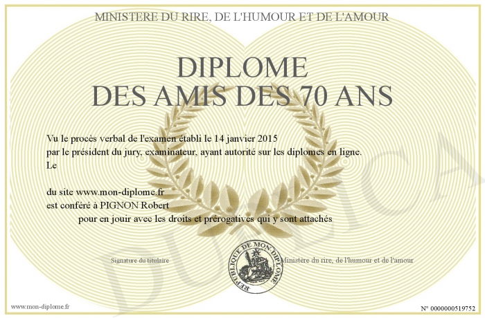Envoyez par email votre Diplôme des amis des 70 ans personalisé