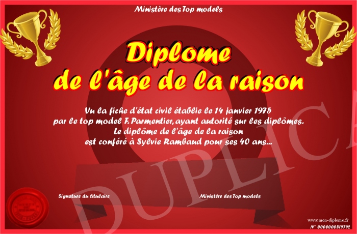 Envoyez par email votre Diplôme de l'âge de la raison personalisé
