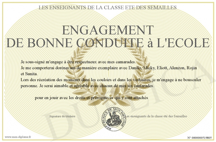 Envoyez par email votre Engagement de bonne conduite à l'école personalisé