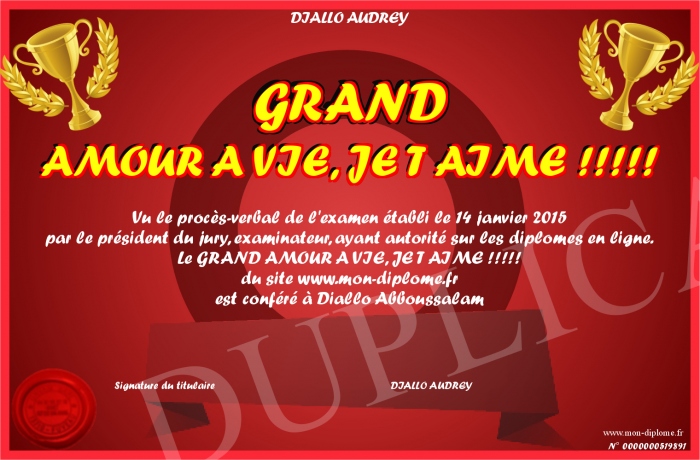 Envoyez par email votre GRAND AMOUR A VIE, JE T AIME !!!!! personalisé