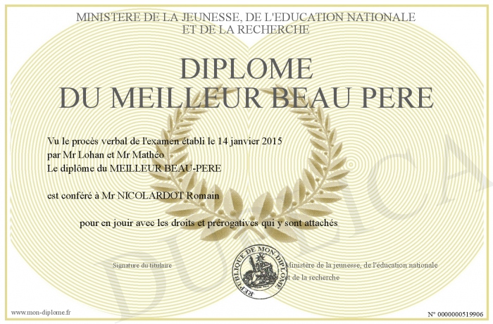 Envoyez par email votre Diplôme du MEILLEUR BEAU PERE personalisé