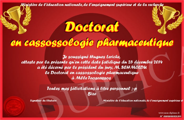 Envoyez par email votre Doctorat en cassossologie pharmaceutique personalisé