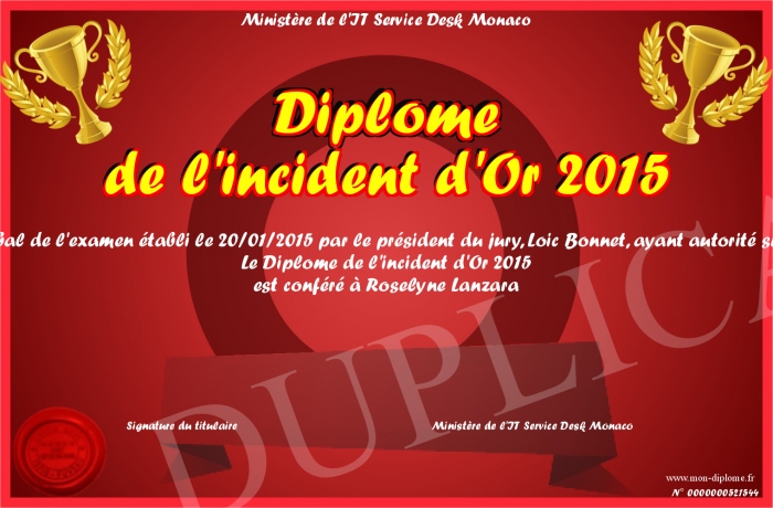 Envoyez par email votre Diplôme de l'incident d'Or 2015 personalisé