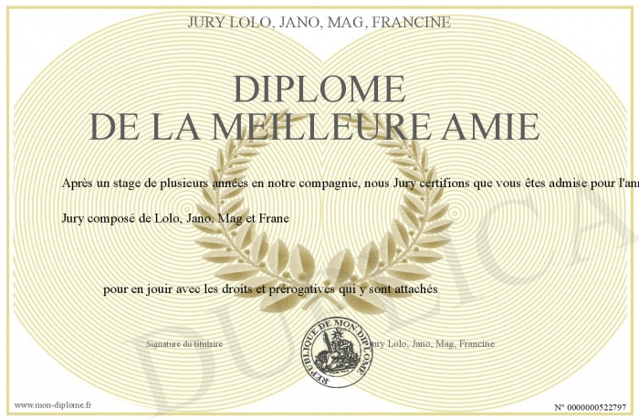 Envoyez par email votre Diplôme de la Meilleure Amie personalisé
