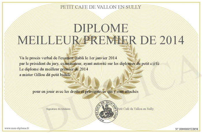 Envoyez par email votre Diplôme meilleur premier de 2014 personalisé