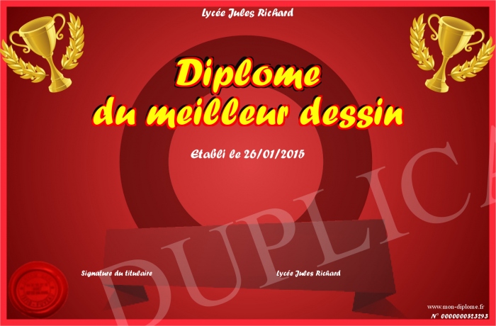 Envoyez par email votre Diplôme du meilleur dessin personalisé