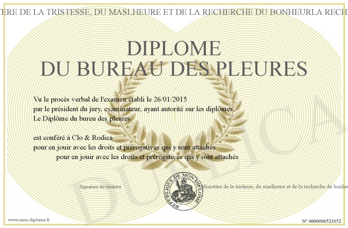 Envoyez par email votre DIPLOME DU BUREAU DES PLEURES personalisé