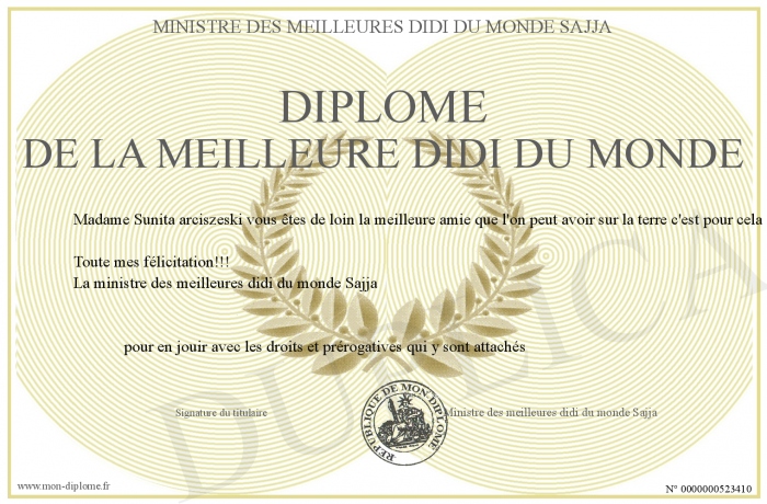 Envoyez par email votre Diplôme de la meilleure didi du monde personalisé
