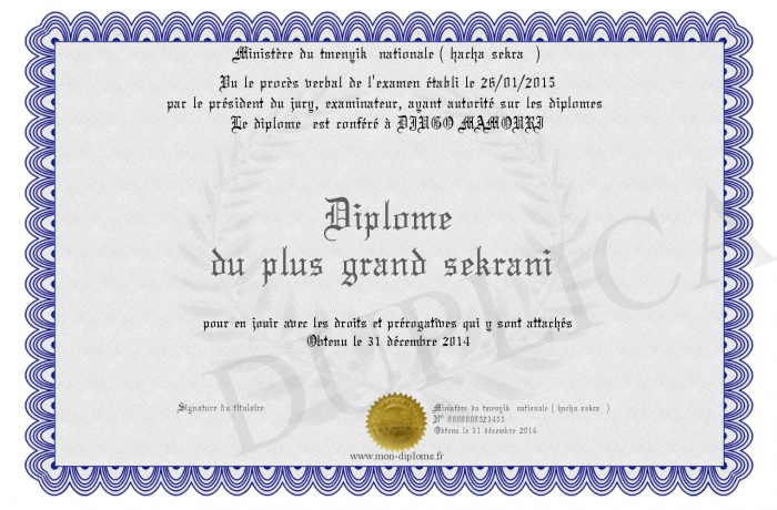 Envoyez par email votre Diplôme du plus grand sekrani personalisé
