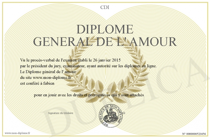 Envoyez par email votre Diplôme général de l' amour personalisé
