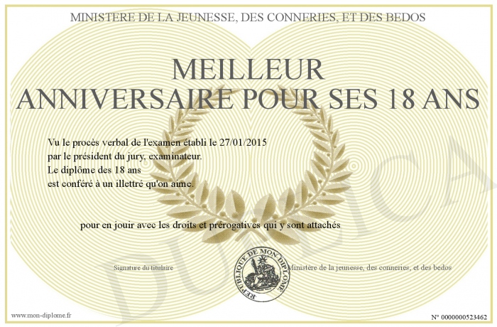 Envoyez par email votre Meilleur anniversaire pour ses 18 ans personalisé