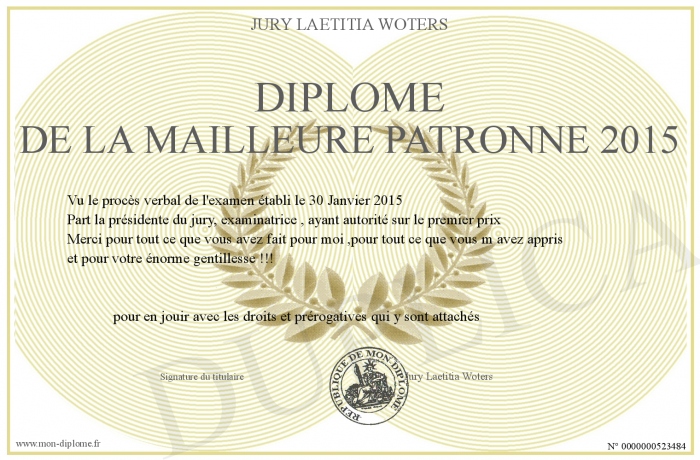 Envoyez par email votre Diplôme de la mailleure patronne 2015 personalisé