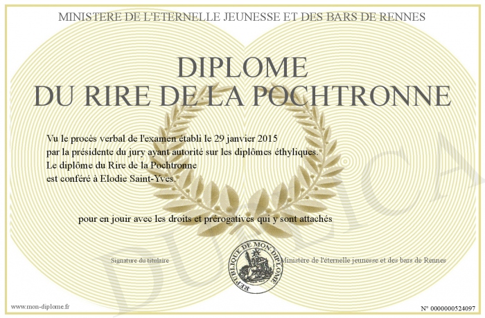 Envoyez par email votre Diplôme du Rire de la Pochtronne personalisé