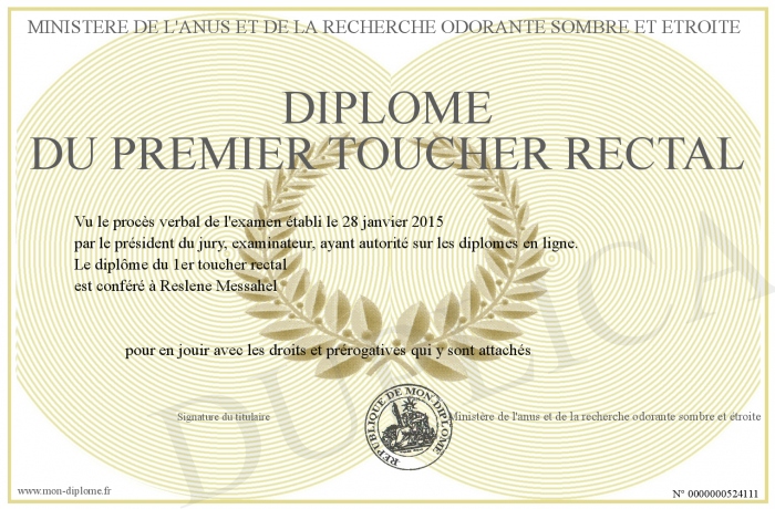 Envoyez par email votre Diplôme du premier toucher rectal personalisé
