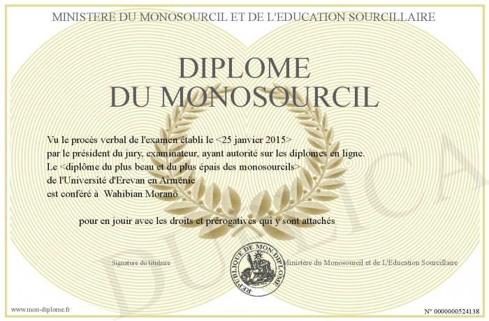 Envoyez par email votre Diplôme du Monosourcil personalisé